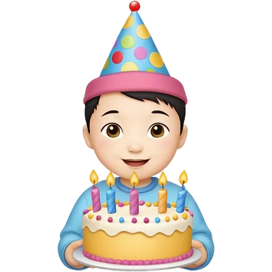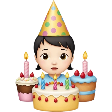 cute baby wearing birthday hat with birthday cake emoji | AI Emoji Generator