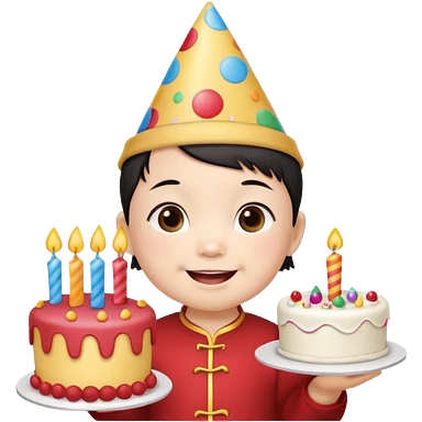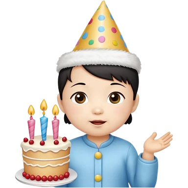 with chines cute baby wearing birthday hat with birthday cake emoji