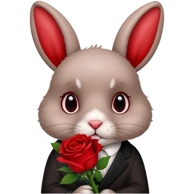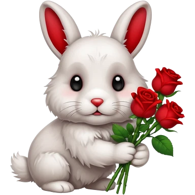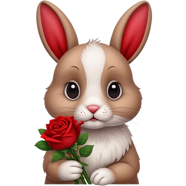 Cute rabbit with sad puppy dog eyes holding roses emoji