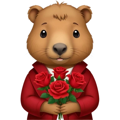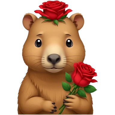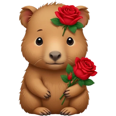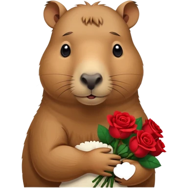 Cute capypara with sad puppy dog eyes holding roses emoji