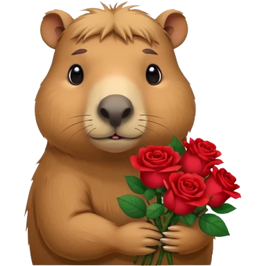 Cute capypara with sad puppy dog eyes holding roses emoji