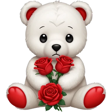 Cute white teddy bear with sad puppy dog eyes holding roses emoji