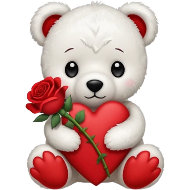 Cute white bear with sad puppy dog eyes holding roses emoji