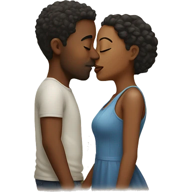 30-year-old guy with dark hair and short, dark beard kissing a 28-year-old cute girl with pale skin and black hair with bangs  emoji