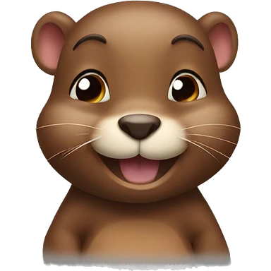 Very cute beaver with frog beanie smiles towards with their teeth out emoji