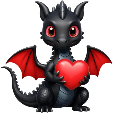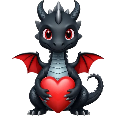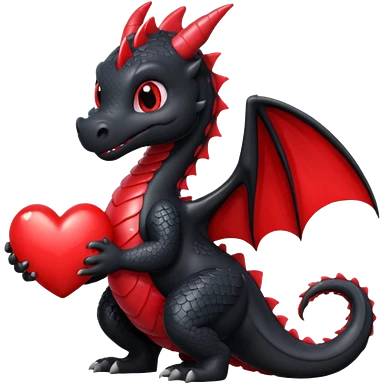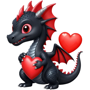 Cute black dragon holding a red heart emoji