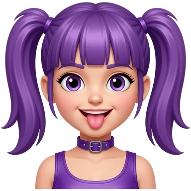 Cute purple girl with two ponytails and a purple leather collar, tongue out emoji