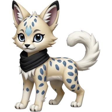 Cool edgy cute adorable hyper-realistic badass Serval-Lycanroc-Snow-Leopard-Absol-Fakémon-hybrid-creature (full body) wearing a black scarf emoji