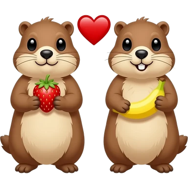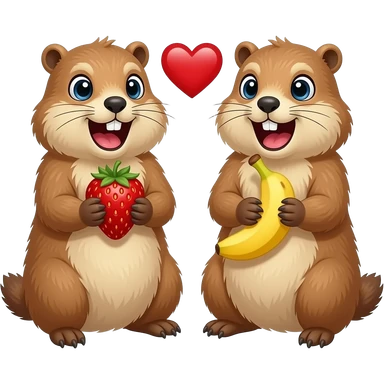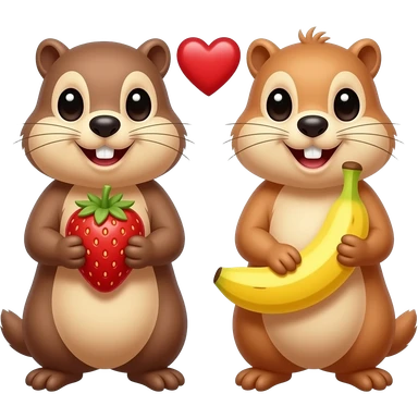 Marmot with strawberry and marmot with banana, heart between the two marmots emoji