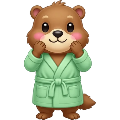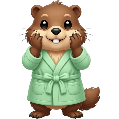 Marmot with hands around big cheeks and wearinf light green bath robe emoji