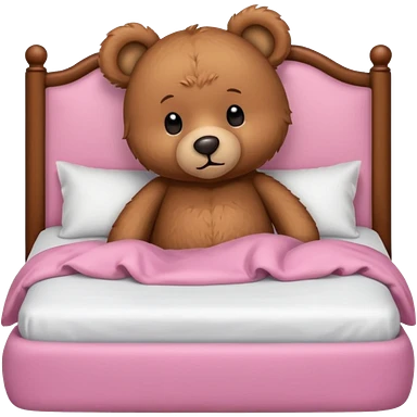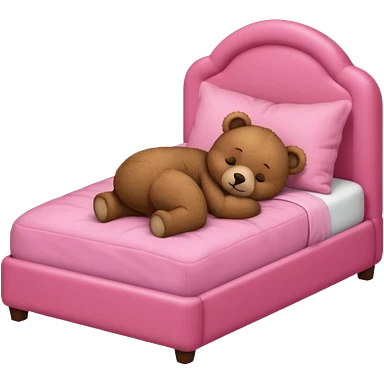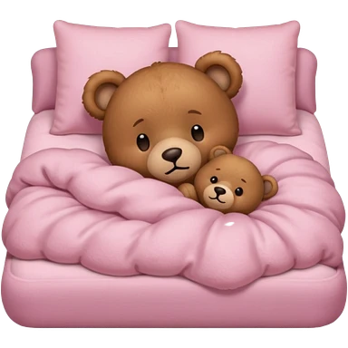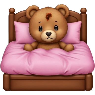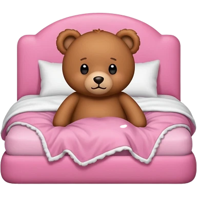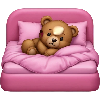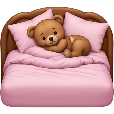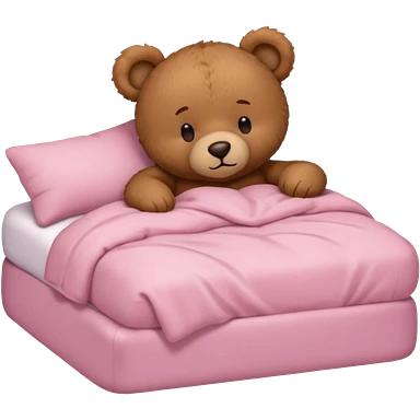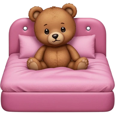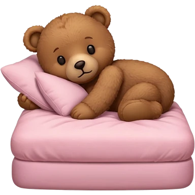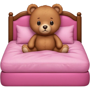 Cute Brown Teddy bear in pink bed emoji | AI Emoji Generator