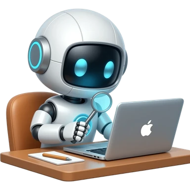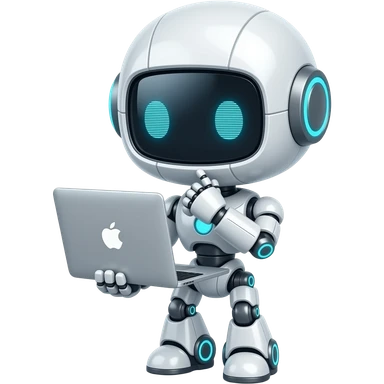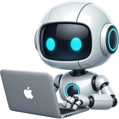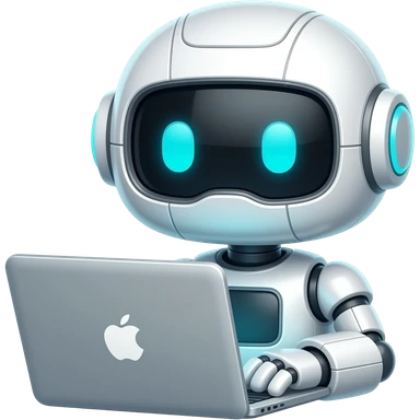 cute robot use mac book -- acting link it look for sth and thikn emoji