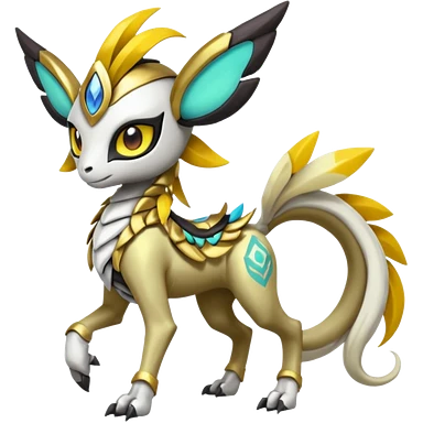 Cute Baby Colorful Shiny Tribal Skeletal masked armored Meloetta-Silvally-Solgaleo-Raikou-Pokémon-Digimon-Fakémon-fusion-hybrid-creature, full body emoji