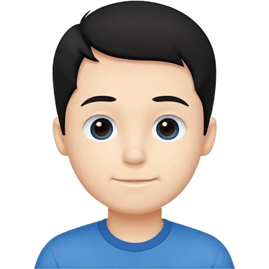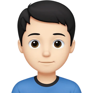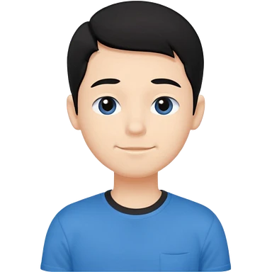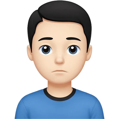 Cute cartoon-style girl portrait, black hair, blue t-shirt, big black eyes, closed mouth,clean bold lines, flat colors, minimal shading emoji | AI Emoji Generator