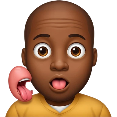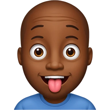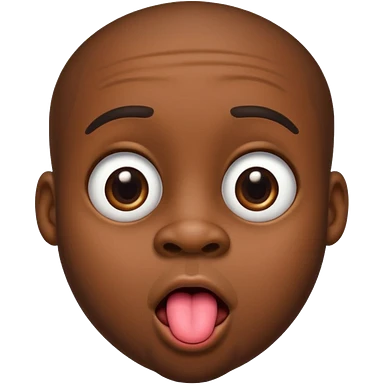 A close-up image of a cute and fluffy cat with big eyes and a pink tongue sticking out, looking directly at the camera with a playful expression. emoji