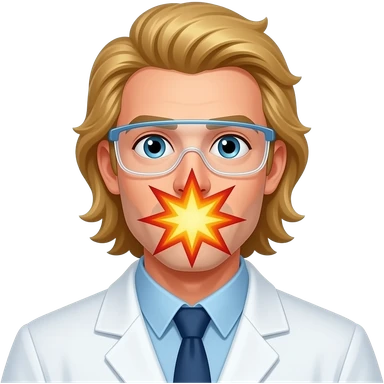 clean shaven male scientist with long blonde hair experiences an experiment exploding in his face emoji