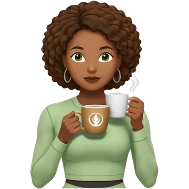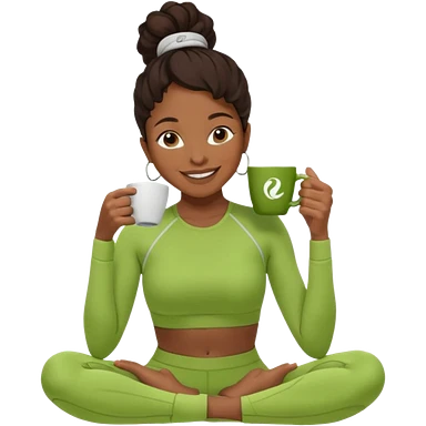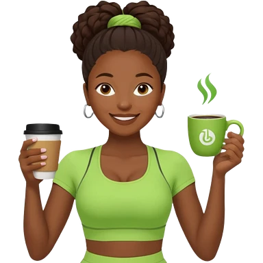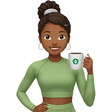 A black woman drinking a coffee dressed in a Lululemon co-ord green fit emoji