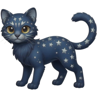 Cute kawaii cool edgy badass glossy midnight-blue fur with silver starlight dusting fantasy-caracal-civet-genet-sergal-vernid-Gryphon-Cacomistle-Trico-oncilla-animal-Fakémon-hybrid-fursona (full body), facial markings, (realism style) emoji