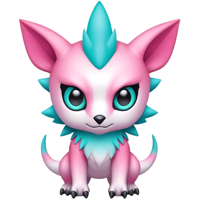 Cute cool edgy kawaii pink-white-turquoise-gradient Digimon-fakemon-creature emoji | AI Emoji Generator