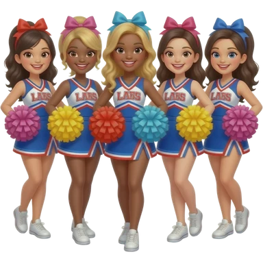 TCheerleaders are beautiful and cute, wearing brightly colored bows. emoji