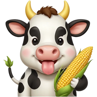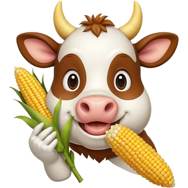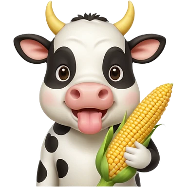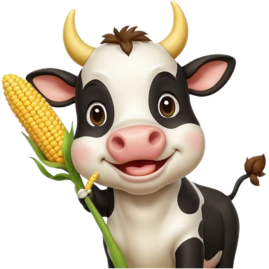 cute cow eating corn, holding corn with mouth, happy expression, 3D cartoon, mobile game icon style, clean background, no text, no watermark emoji