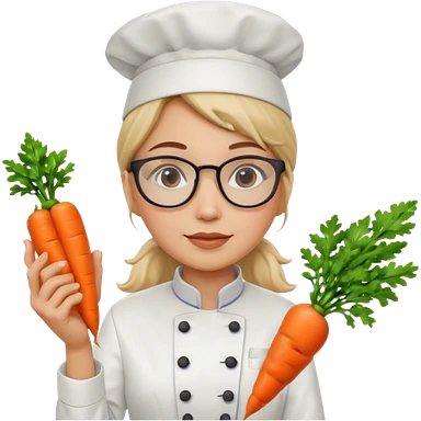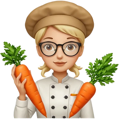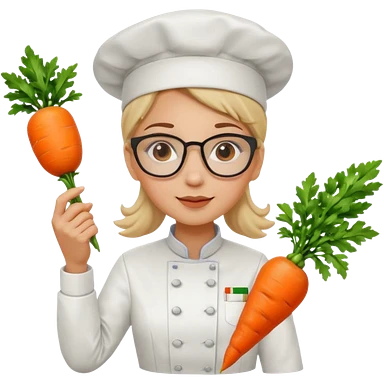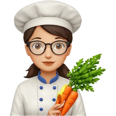 female italian chef, uniform, wearing glasses, holding carrot emoji