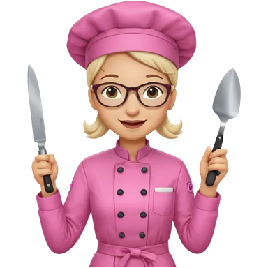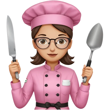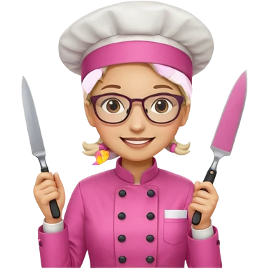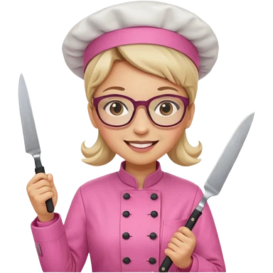 female italian chef, pink uniform, wearing glasses, holding knife emoji