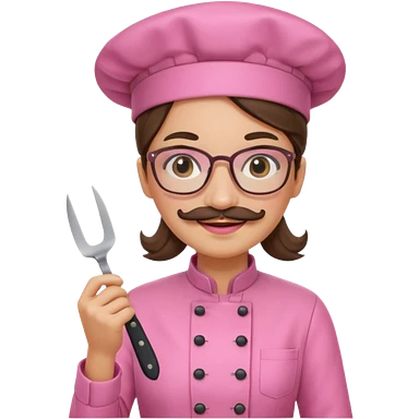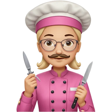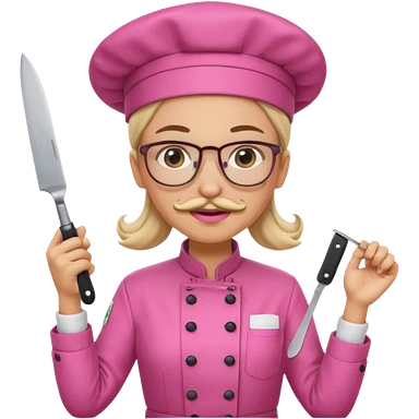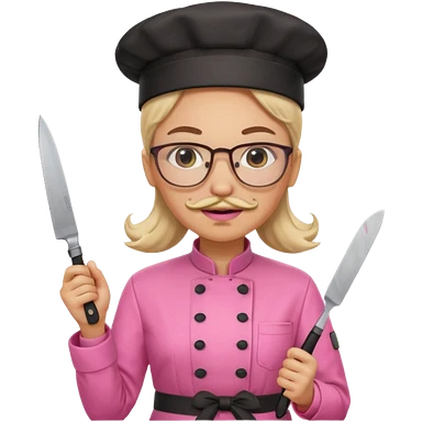 female italian chef, pink uniform, with mustace, wearing glasses, holding knife emoji