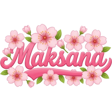Cute cursive bubbly pink “Maksana” in minor with sakura flowers emoji