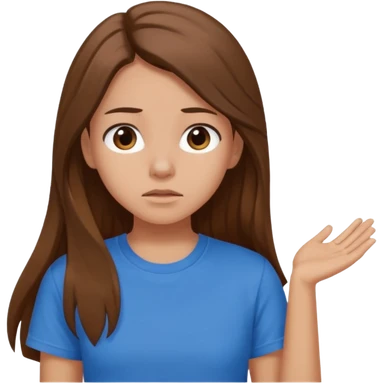Cute girl with long brown hair and blue t shirt who is chocked emoji
