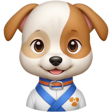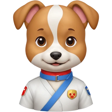 cute dog doing karate portrait, head and shoulders only, wearing white gi uniform, colored belt visible, confident smile, 3D cartoon, mobile game icon style, clean background, no text, no watermark emoji
