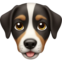 a cute dog sitting in front a computer. typing in some text with his paws. head looking back. emoji