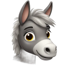 cute donkey emoji, smiling, with big ears, yellow background emoji