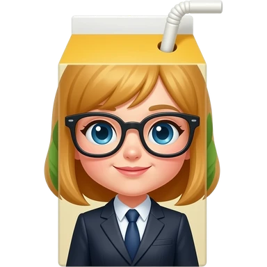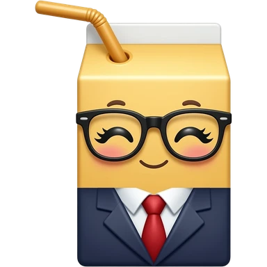 Cute juice box with eyeglasses and eyelashes, wearing a business dress emoji