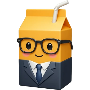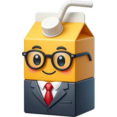 Cute juice box with eyeglasses, wearing a business suit emoji