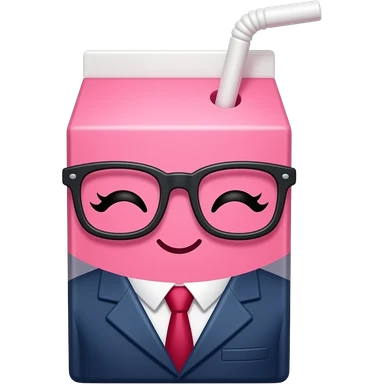 Cute pink juice box with eyeglasses and eyelashes, wearing a business dress emoji