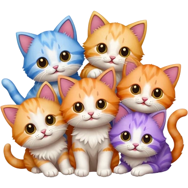 Cute chibi kitten emoji, big sparkly eyes, tiny pink nose, pastel colors, simple thick outline, smiling, clean flat shading, transparent background, no text emoji