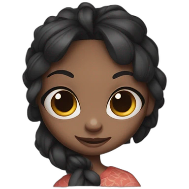 cute emoji-style girl face inspired by Lilo from Lilo & Stitch, only the head, big round eyes, soft smile, smooth tan skin, straight black hair, a single red hibiscus flower hair clip on the left side, kawaii style, minimal details, pastel colorsemoji