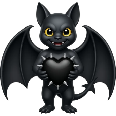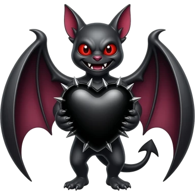 Cute evil bat holding a big black heart with spikes emoji | AI Emoji Generator