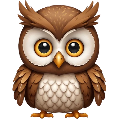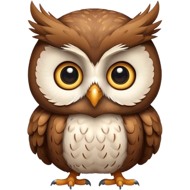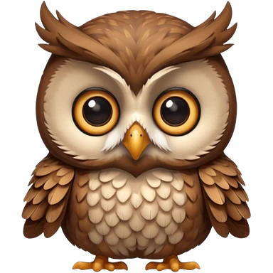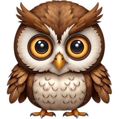 Cinematic Cute Great Horned Owl Portrait Emoji, Head tilted playfully and inquisitively, featuring a lush mottled Fur with intricate patterns of gray and white, round, sparkling golden eyes filled with curious wonder, Simplified yet irresistibly adorable features, highly detailed, glowing with a warm, friendly glow, high shine, affectionate and wise, stylized with a touch of nocturnal whimsy, bright and endearing, soft glowing outline, capturing the essence of a mischievous yet loving owl, so playful it feels like it could glide out of the screen and perch in your arms! emoji
