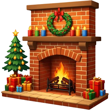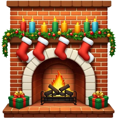 Cozy Christmas fireplace with decorations emoji