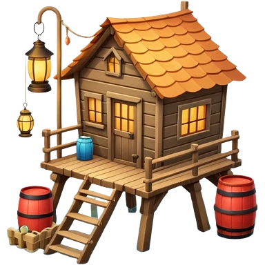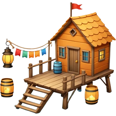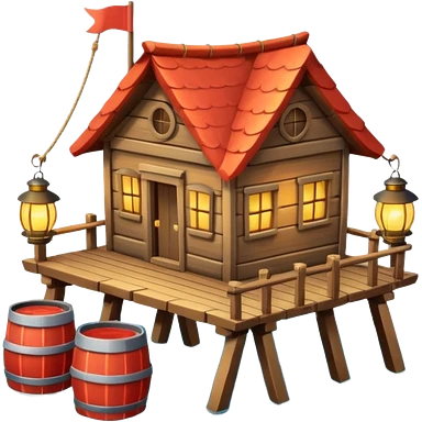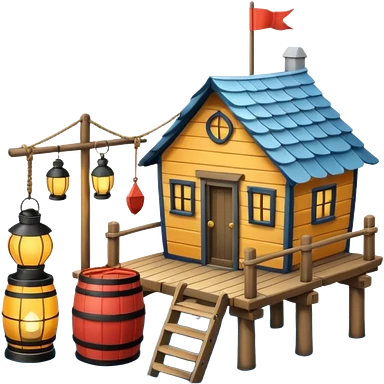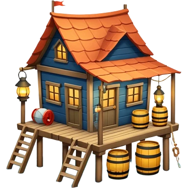 cute fisherman house, small wooden seaside cabin, fishing nets, fishing boat sign, rope details, warm sunlight, coastal vibe, 3D cartoon, mobile game icon style, soft shadows, clean background, no text, no watermark emoji | AI Emoji Generator