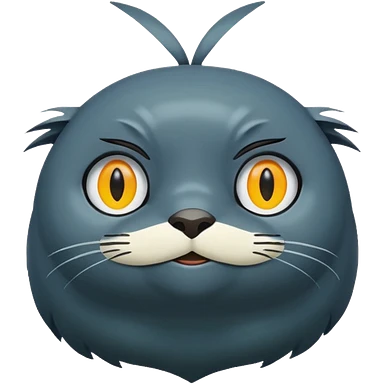 black cat with big round eyes and fuzzy outline inspired by Ghibli dust sprites emoji
