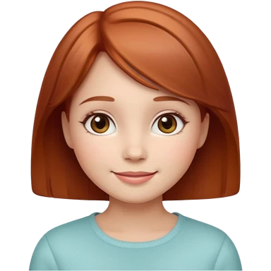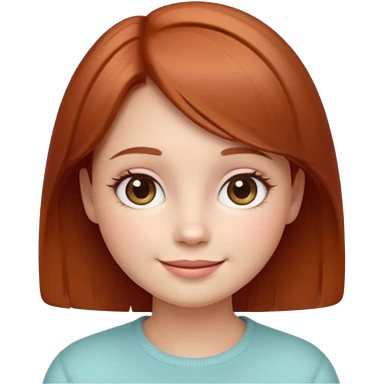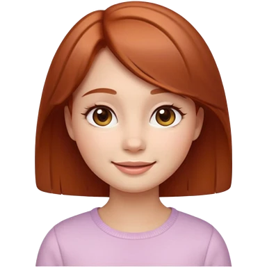 “Cute girly emoji portrait, warm friendly smile, short auburn hair with soft shine, rounded facial features, pastel color palette, subtle blush on cheeks, simplified facial details, soft gradient shading, cozy and feminine emoji style, clean light background. emoji