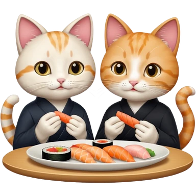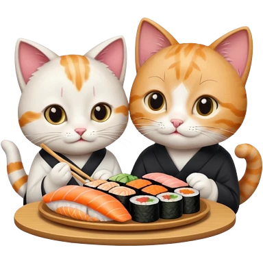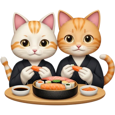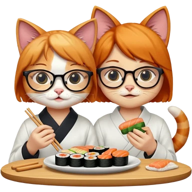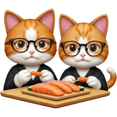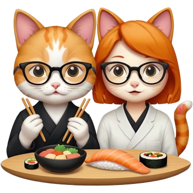cute girl cat wearing glasses and a cute boy cat eating sushi together emoji | AI Emoji Generator
