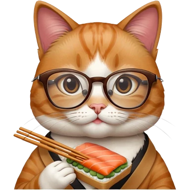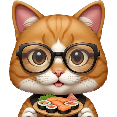cute girl cat with really big square glasses with super thin frames eating sushi emoji