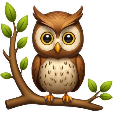 A chubby owl perched on a branch, sporting a fluffy feathery beard and looking very wise yet cute. emoji