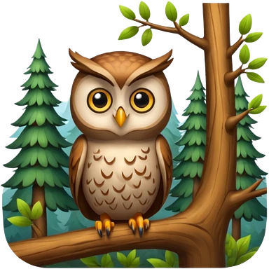 forest character side eye with owl perched emoji