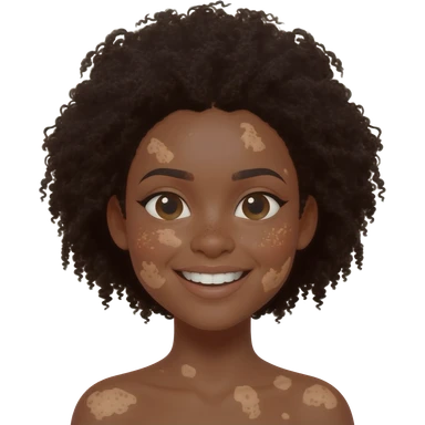 emoji of a black girl with vitiligo.she should have a lot of hair and vitiligo patches emoji