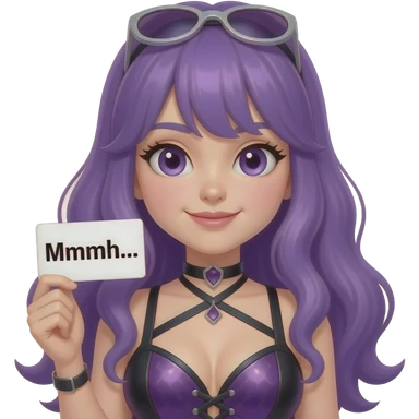 girl with long purple hair wearing a sexy costume holding a Mmmh... sign emoji